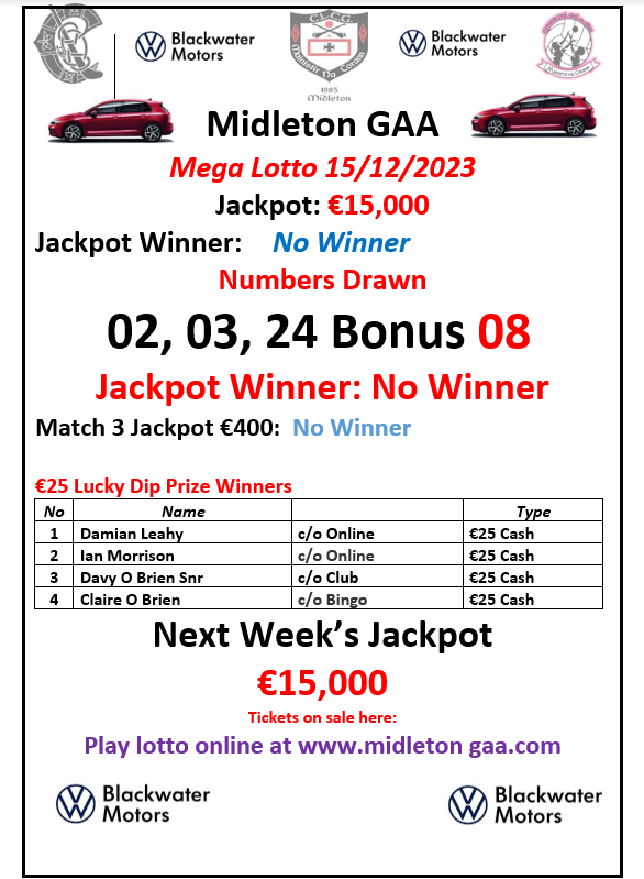 Remember you can play anytime at: http://www.klubfunder.com/Clubs/Midleton%20GAA/lotto