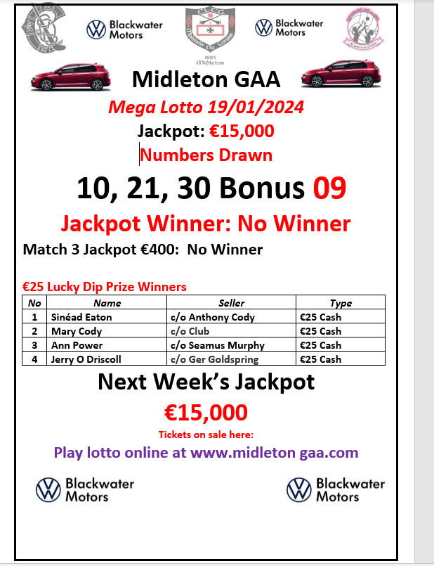 Remember you can play anytime at: http://www.klubfunder.com/Clubs/Midleton%20GAA/lotto