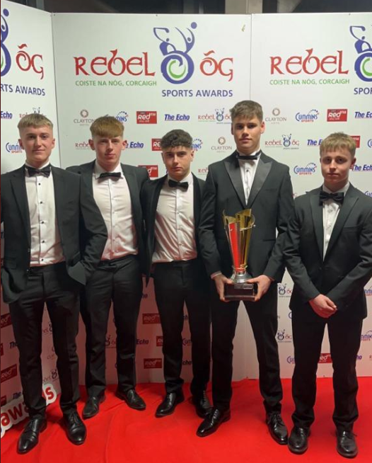 A big well done to the Midleton players who collected an award at last Friday night's Rebel Og Awards at the Silver Springs Hotel. The five lads were part of the East Cork team that won the Celtic Challenge in June. L to R: Eoin Fraser, Fionn Kelly, Daniel Garde, Luca Brodkorb and Darragh Egan.
