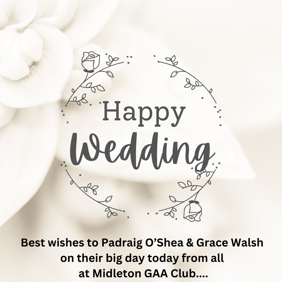 Best wishes to County winning Senior Hurling Captain and current senior selector Padraig O’Shea & Grace Walsh on their big day today (Thursday) from all at Midleton GAA Club....