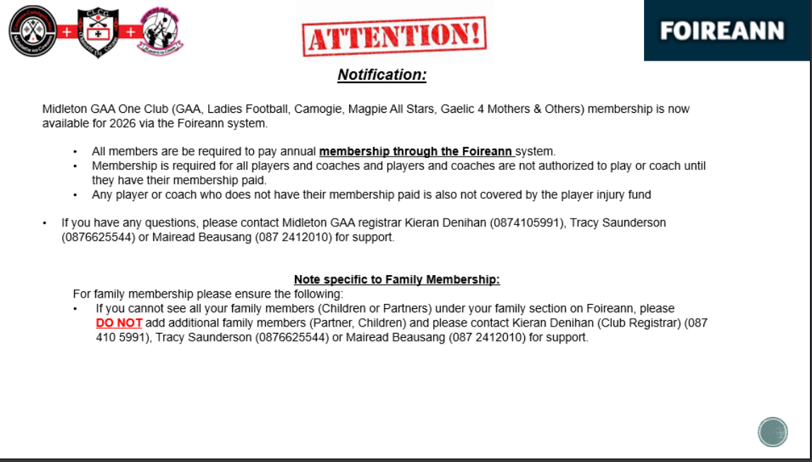 Midleton Hurling and Football, Ladies Football and Camogie Club Notes Feb 5th 2026